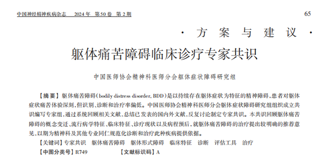01 概述定義BDD以持續存在軀體癥狀為特征,患者對軀體癥狀痛苦體驗深刻并過度關注這些癥狀,進而產生反復就醫行為,引起個人、家庭、社交、教育、職業及其他重要領域的功能損害。雖然可能有客觀存在的軀體疾病導致..