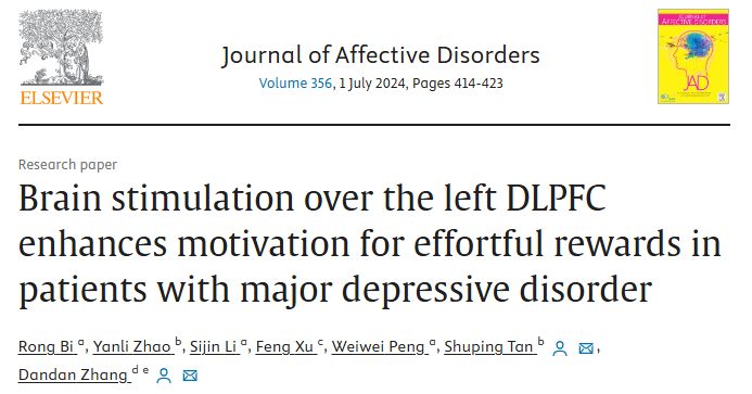 動機缺乏是重度抑郁癥(Major depressive disorder, MDD)中的典型特征之一,表現為減少努力的意愿。背外側前額葉皮層(Dorsolateral prefrontal cortex, DLPFC)在目標導向的行為中起著關鍵作用,因此是調節努力動機的..