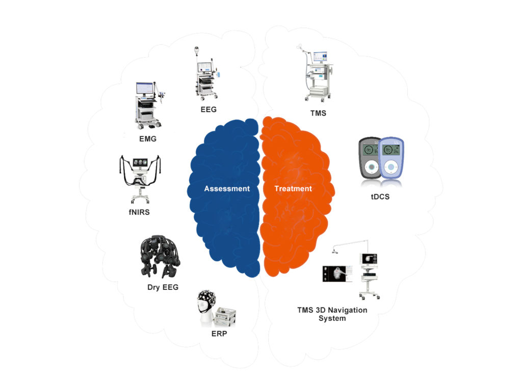 It mainly includes electroencephalogram (EEG), event-related potential (ERP) analyzer, functional near-infrared imaging technology, cognitive function testing and training system, etc. Through these objective examinations, patients are examined before treatment to determine the TMS treatment prescription, and the above-mentioned tests are used to evaluate the therapeutic effect of TMS treatment, which is more convincing than subjective evaluations such as scales.