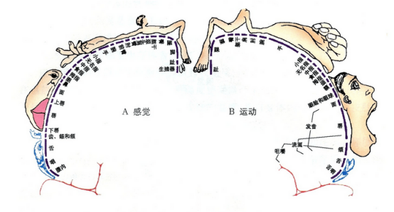 The primary motor cortex directs movement by controlling muscle contractions.In the 1930s, Wilder Penfield and Edwin Boldrey found electrical stimulation of small areas of the frontal lobes sparked movement. The researchers uncovered a map of motor control in this area vaguely corresponding to the layout of the human body. This map-called the homunculus-represents the density of brainpower assigned to controlling different of parts of the body. Those that require fine motor control and have dense nerve stimulation-like the hands and face-are huge, while parts of the body with less-precise motor control, like the legs and torso are much smaller. The primary motor cortex constantly communicates with the basal ganglia, the cerebellum, and areas of the cerebral cortex to ensure movements are intentional, precise, and coordinated with our sensory perception.